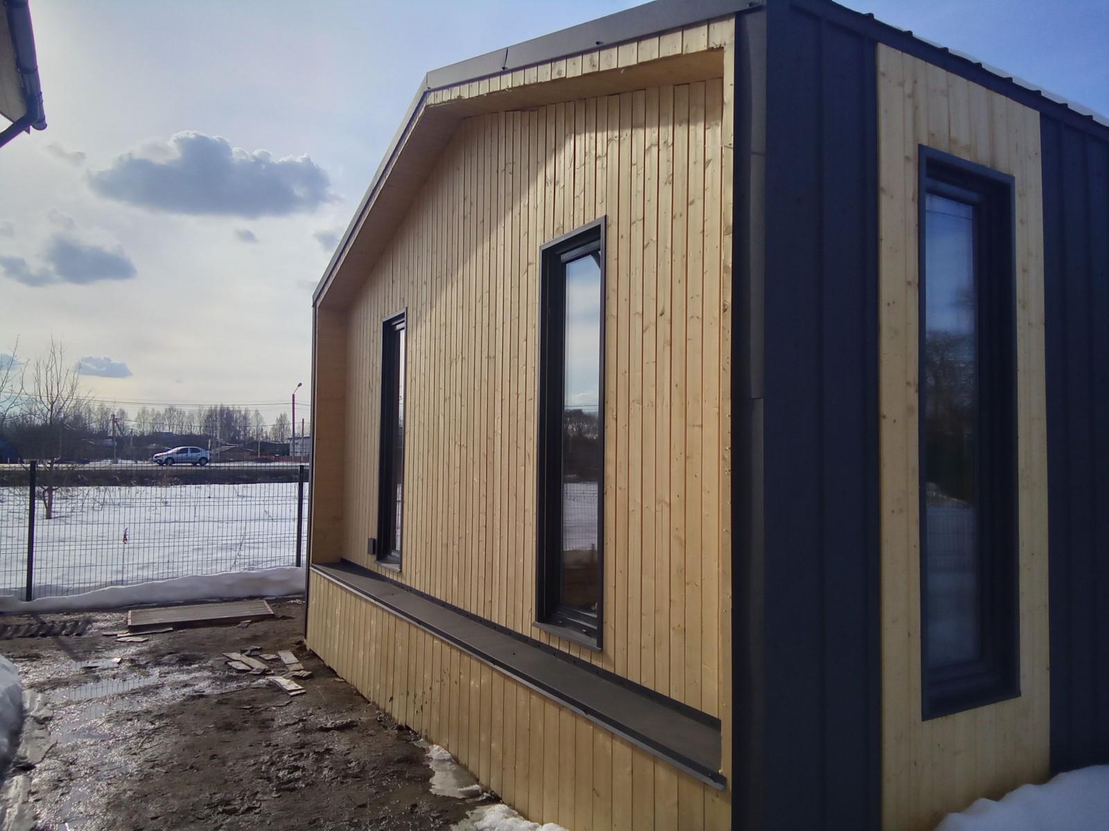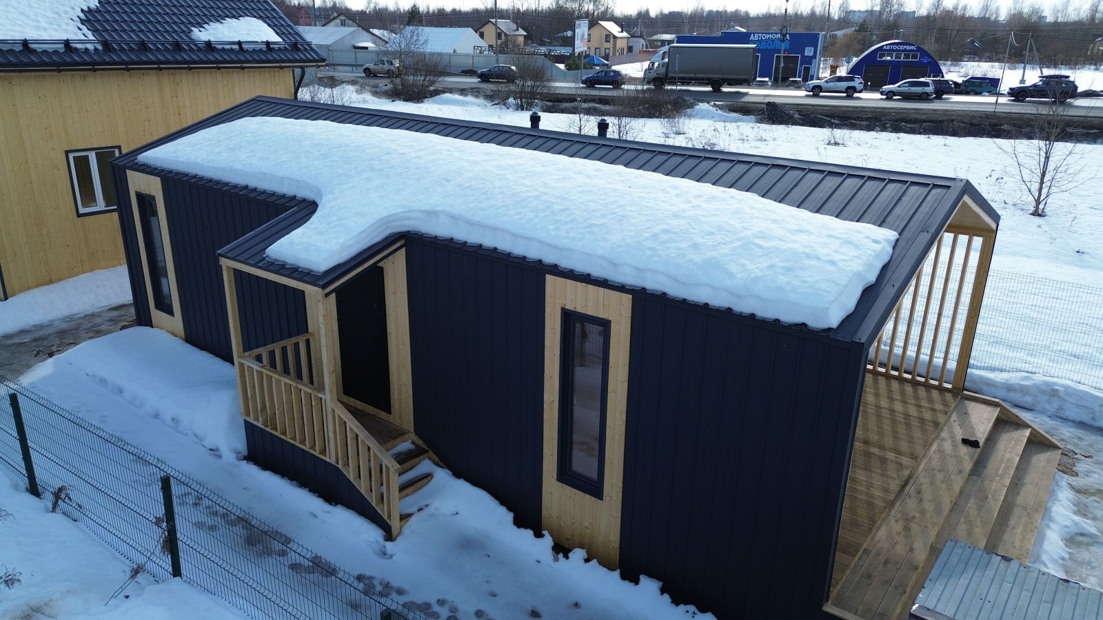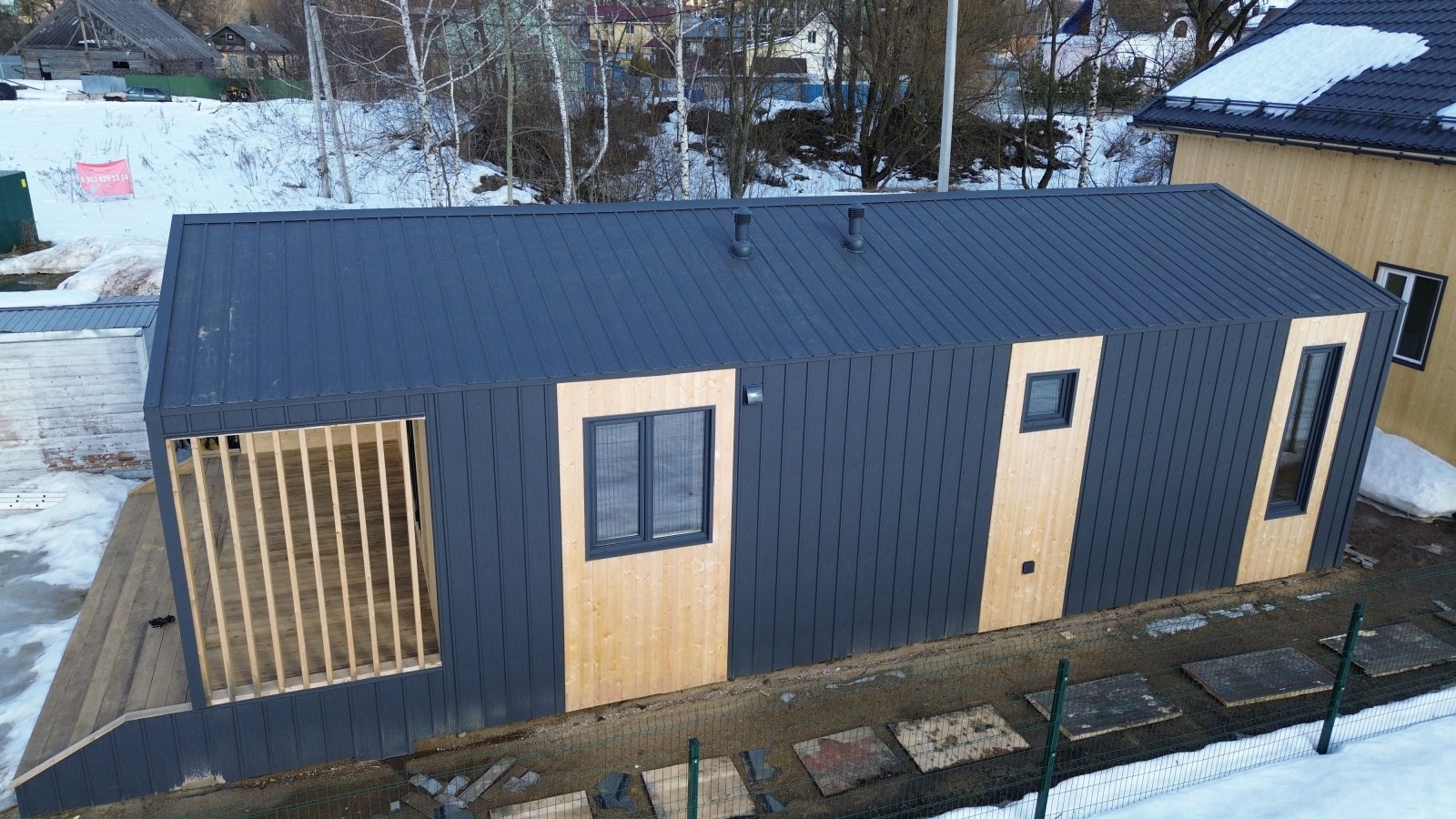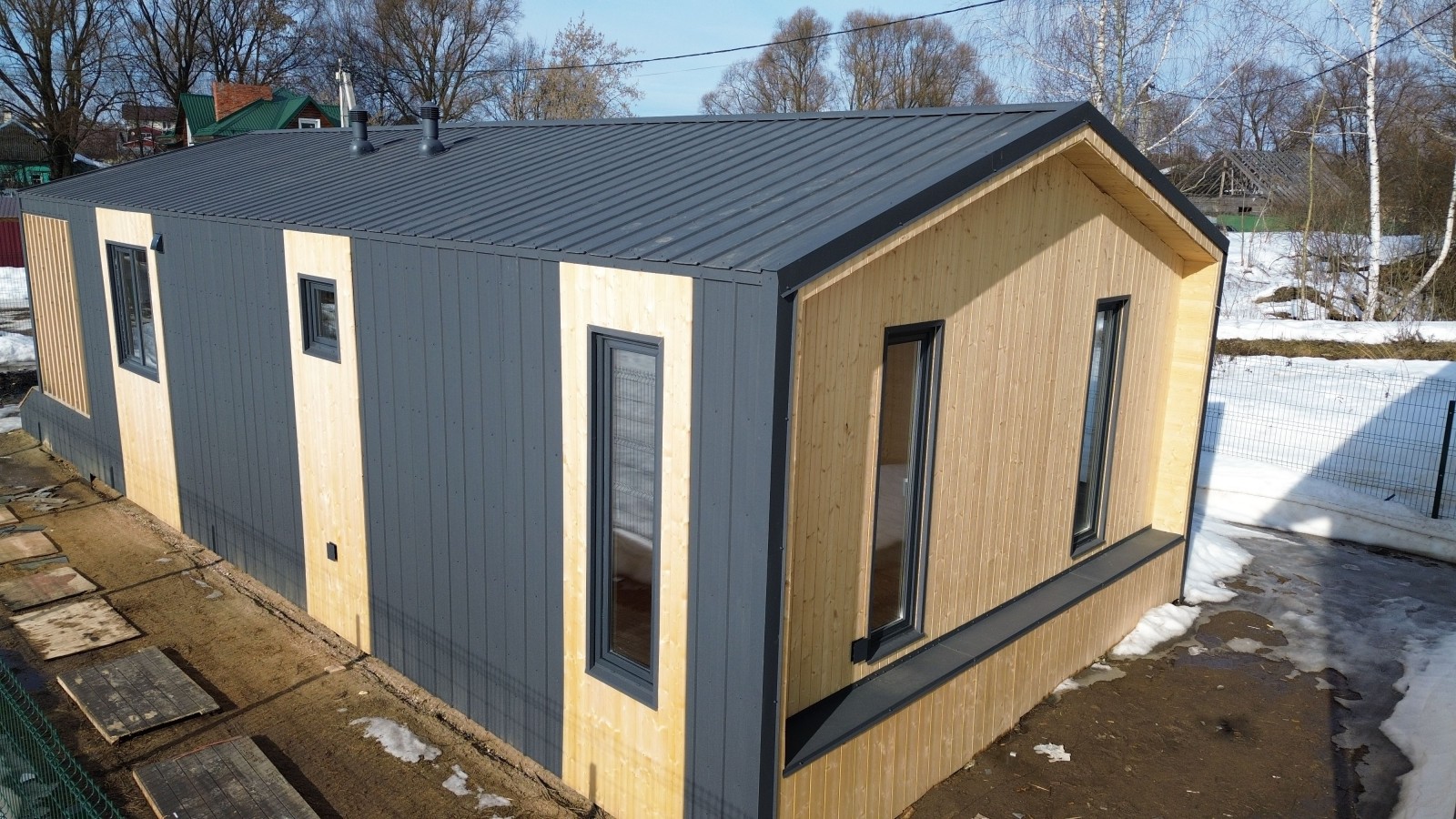 Для Вас на выставочной площадке представлен образец одноэтажного каркасного Барнхауса 13х6 общей площадью 80 кв.м.