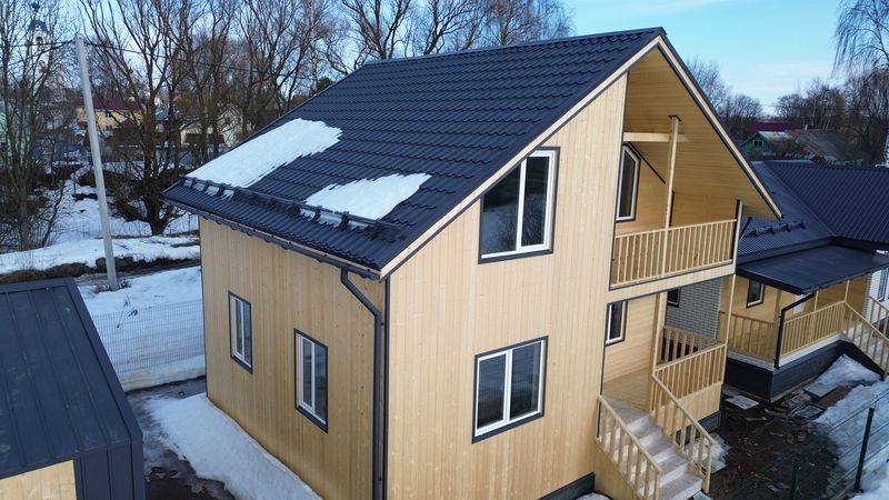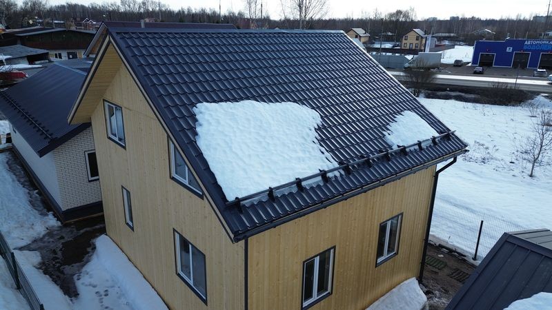 Кровля -- металлочерепица 0,5мм со снегозадержателями и водосточной системой;